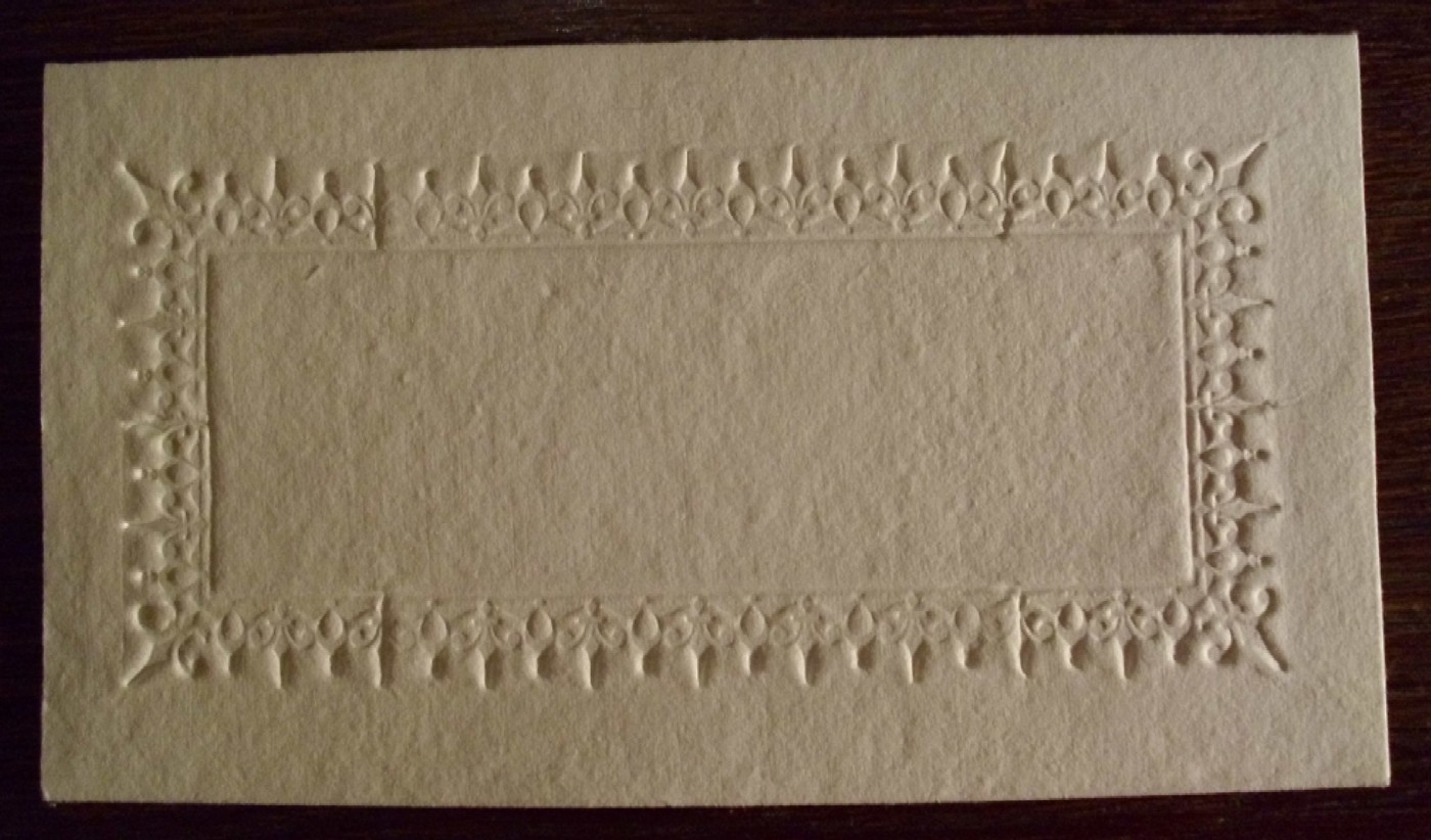angefertigt und von Hand mit einem aufwendigen Prägemotiv versehen.